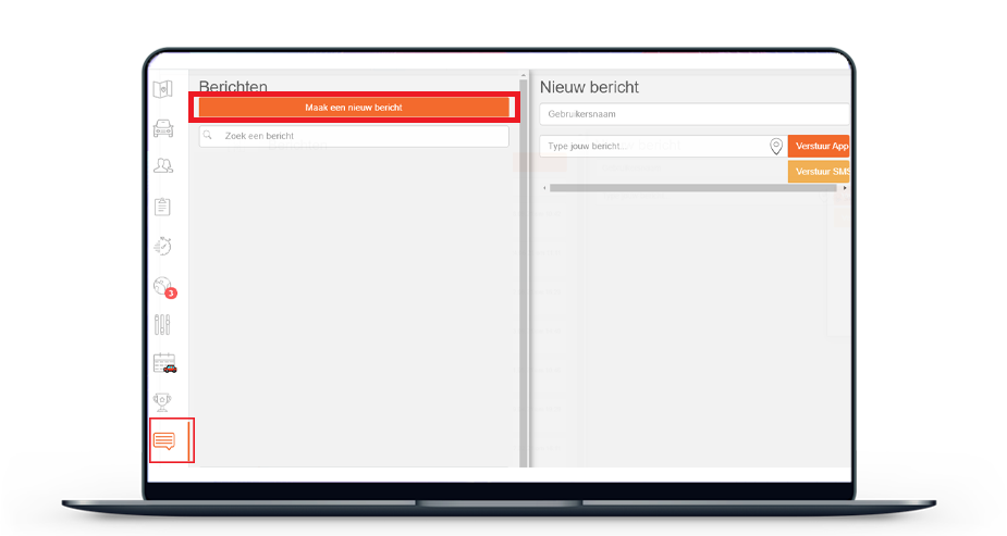 Om een conversatie te starten druk je op “berichten” in het hoofdmenu.